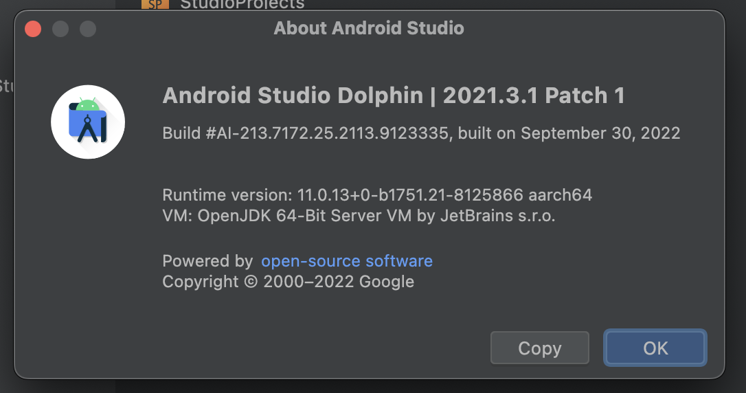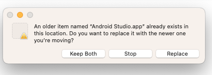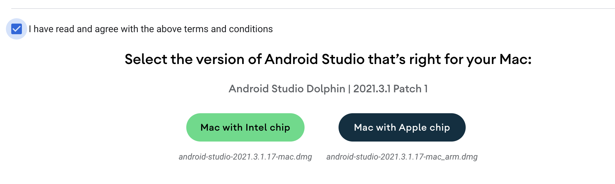최신 버전의 안드로이드 스튜디오는 M1지원이 된다고 하니 설치.