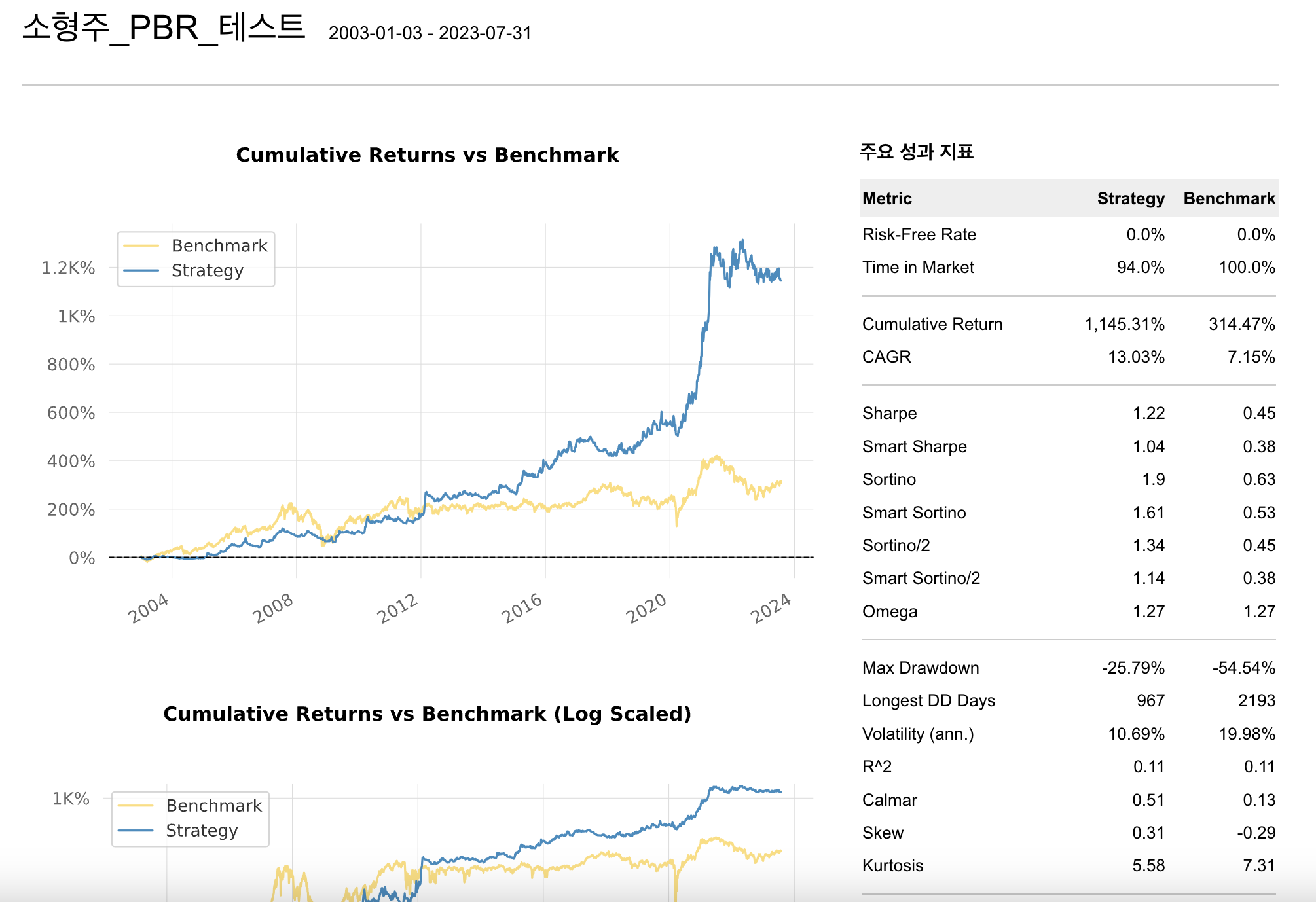비슷한 내용으로, 이번에는 PBR을 팩터로 넣고 하위20% 종목을 테스트.