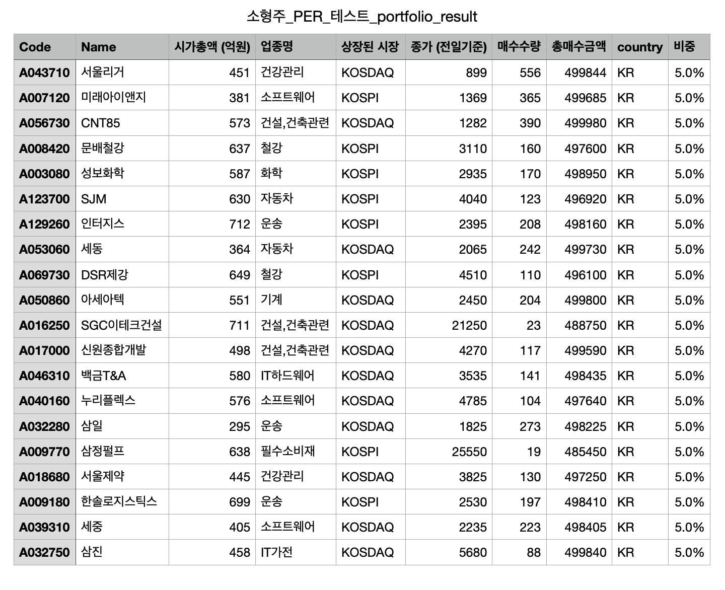 추가로, 위에서 테스트한 종목들을 추출하려면 포트폴리오 추출을 하면 되는데,