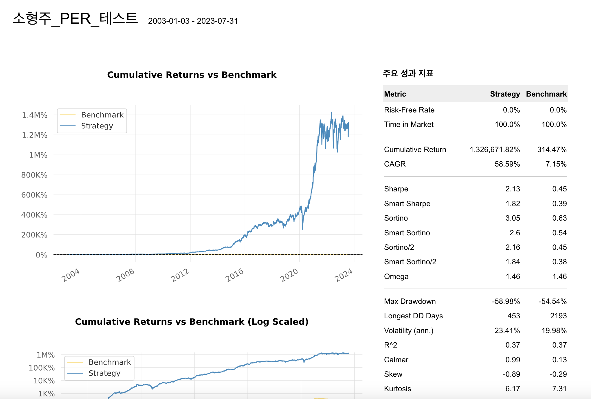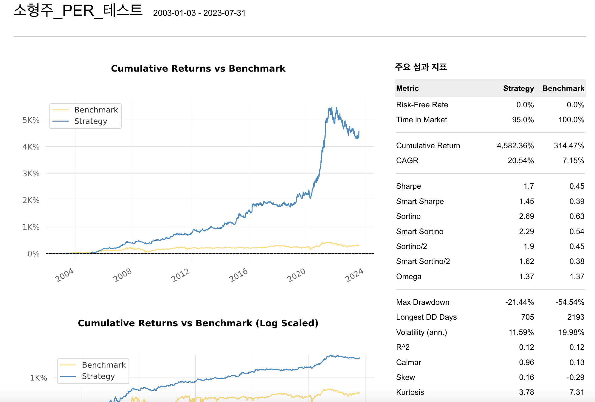 하위 20%기업 중 PER에 가중치를 두고 지난 20년간 투자했으면 얼마나 벌었는지 테스트.