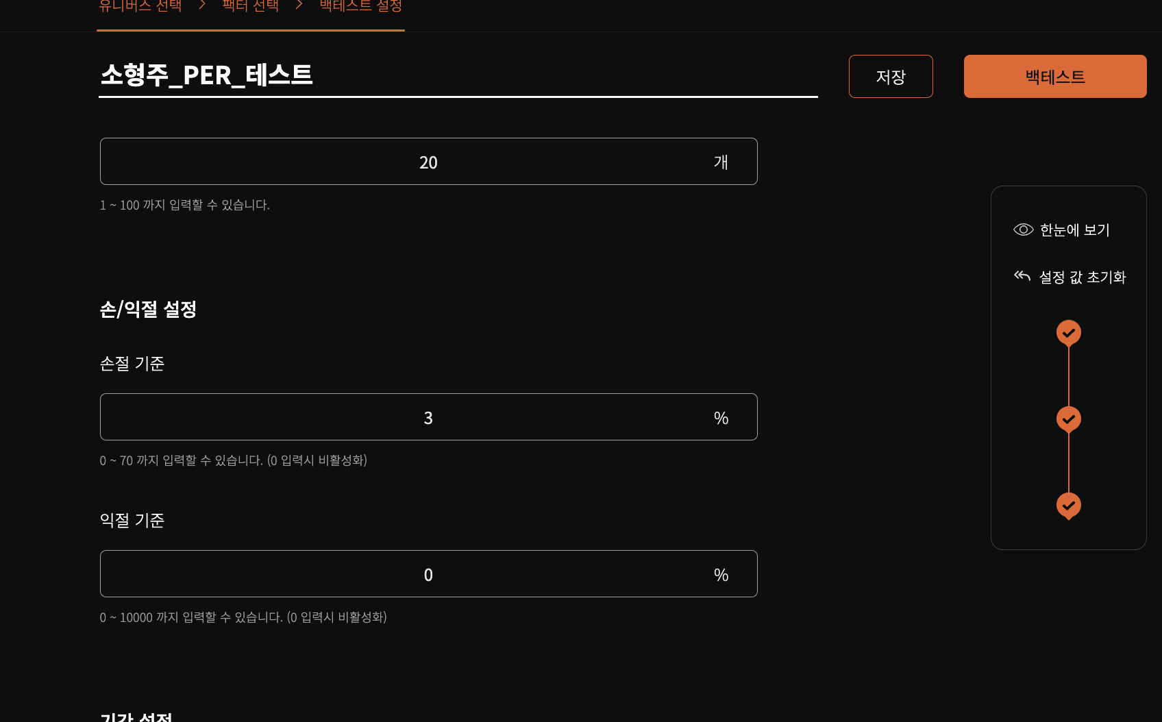 조금 더 보완해 보고자, 손익설정에서 손절만 3%로 조정.