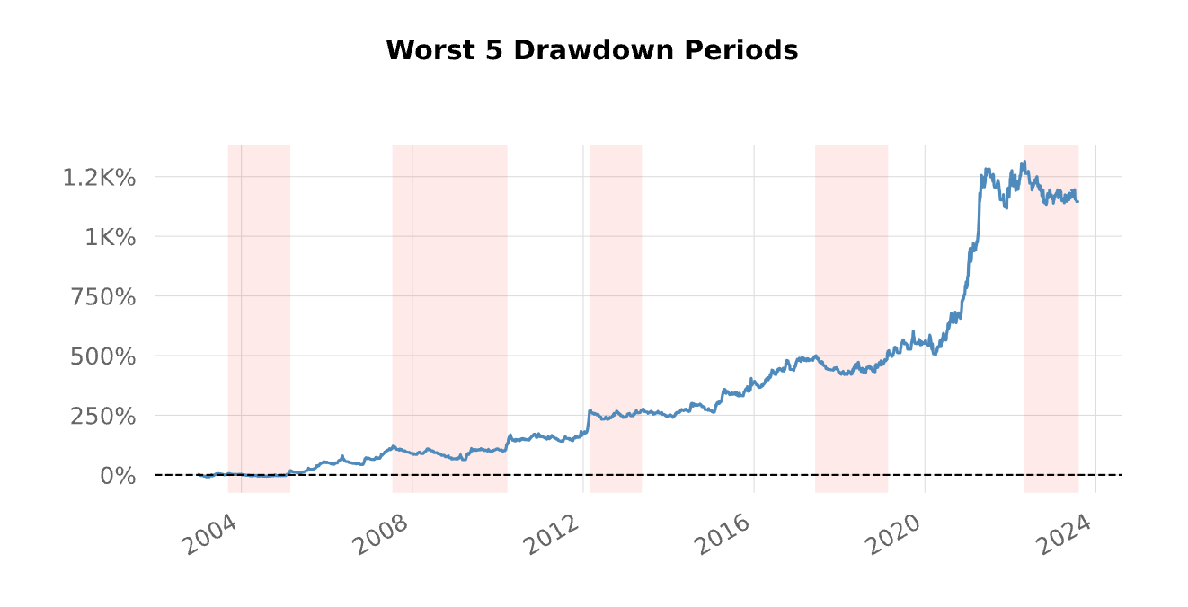 MDD가 -25.79%, CAGR은 1,145% 정도.